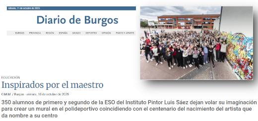 350 alumnos de primero y segundo de la ESO del Instituto Pintor Luis Sáez dejan volar su imaginación para crear un mural en el polideportivo coincidiendo con el centenario del nacimiento del artista…. Noticia...